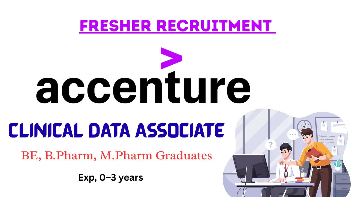 Accenture hiring BE/B.Pharm/M.Pharm candidates for Clinical Data Services Associate roles in Bengaluru. 0–3 years experience.