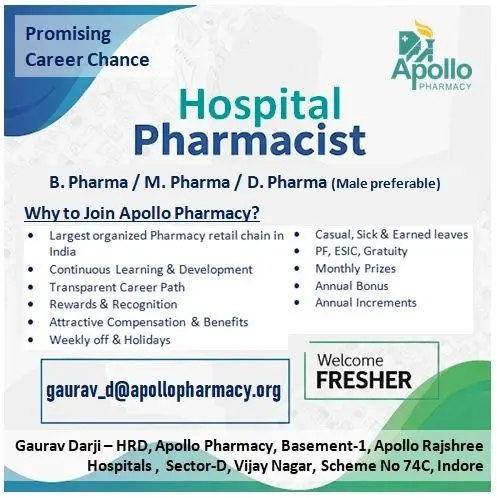 Hospital Pharmacist Job Opening in Indore for B Pharm, M.Pharm & D.Pharm Graduates | Apollo Pharmacy Careers