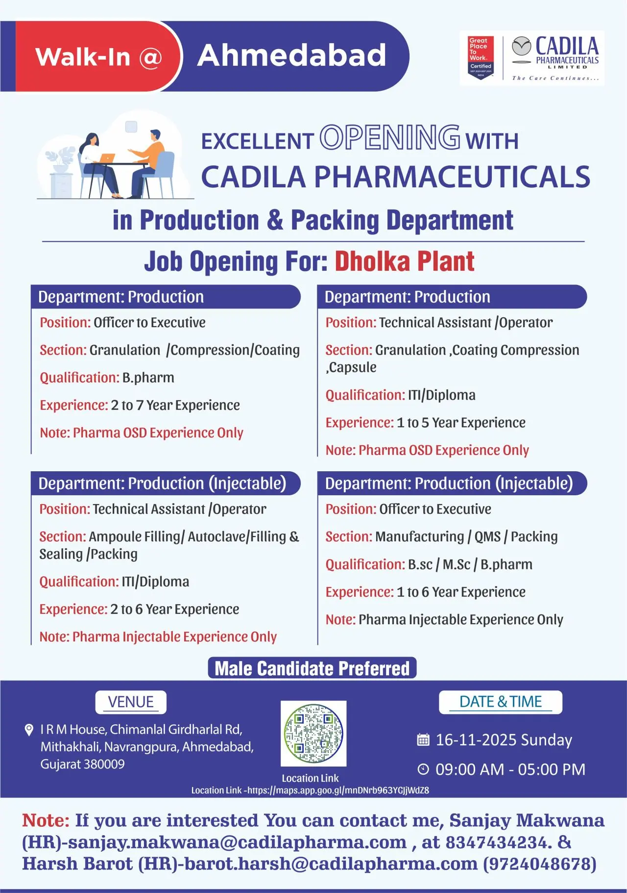 | Walk-in Date & Venue | 16-Nov-2025 | IRM House, Navrangpura, Ahmedabad, Gujarat |