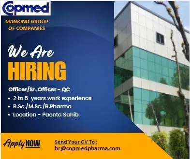 Looking for stable and growth-oriented pharma jobs in quality control? Copmed Pharma, part of the Mankind Group of Companies, is hiring for QC Officer and Senior Officer roles at its Paonta Sahib facility. This recruitment drive is ideal for candidates with 2 to 5 years of experience in pharmaceutical quality control, offering strong career progression in regulated manufacturing environments.