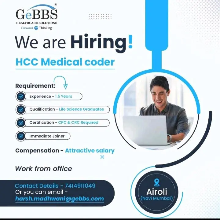Apply for HCC Medical Coder role at GeBBS Healthcare Solutions, Airoli. Life Science graduates with CPC & CRC certification. Attractive salary.