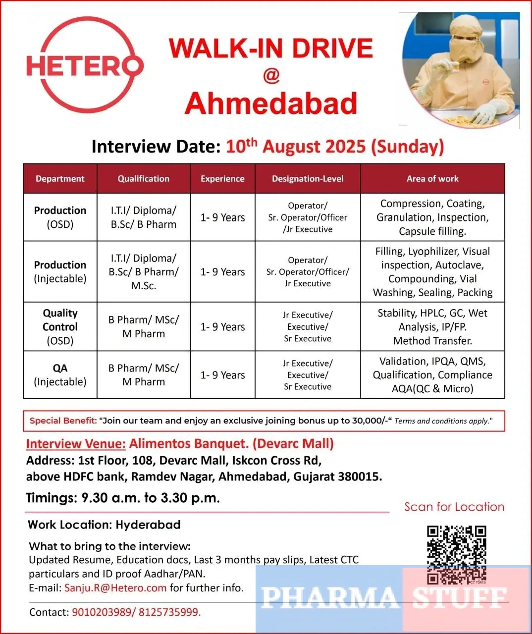 HETERO is currently offering a joining bonus of up to ₹30,000/- to selected candidates. (Terms and conditions apply). Employees enjoy professional development, inclusive work culture, and the opportunity to work in cutting-edge pharma manufacturing facilities.