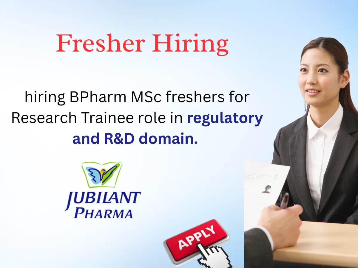 - Jubilant Pharma Hiring Research Trainee in Noida | Freshers Pharma R&D Regulatory Role