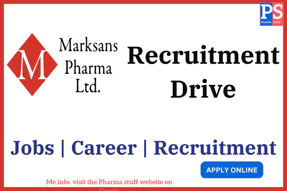 Marksans Pharma is currently seeking qualified candidates for the following roles: