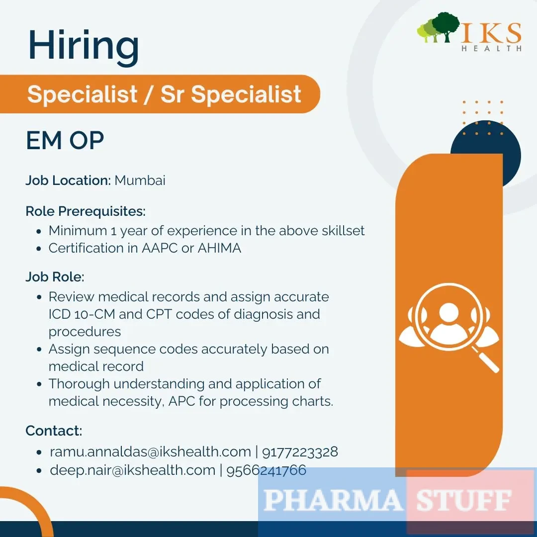 Apply for Specialist & Sr. Specialist Medical Coding jobs at IKS Health in Mumbai. Requires AAPC/AHIMA certification & 1+ year experience.