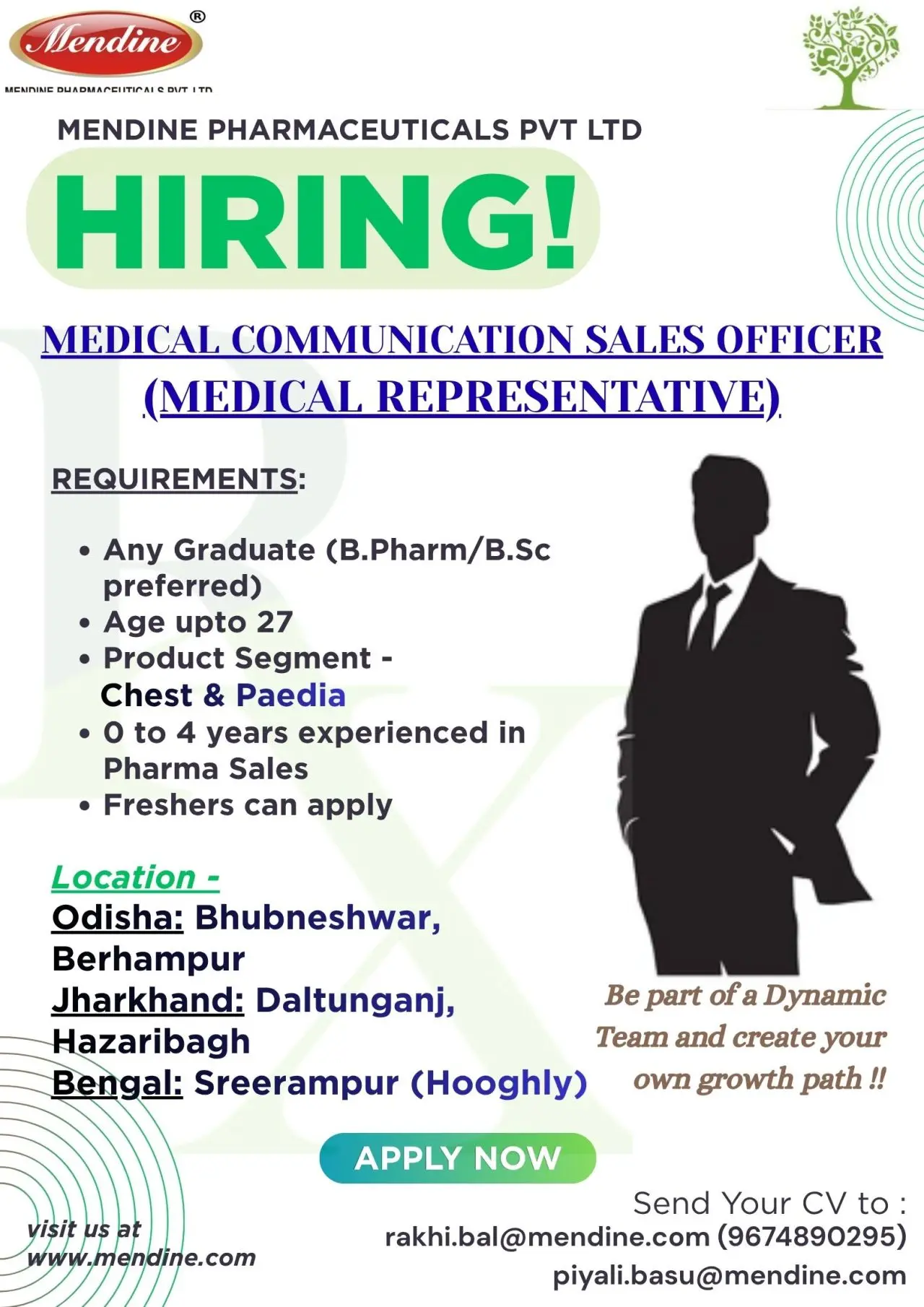With a growing portfolio in Chest and Paediatric segments, Mendine Pharmaceuticals is expanding its field force and offering career opportunities for young professionals to gain real-world exposure in pharma sales, doctor engagement, and product promotion strategies.
