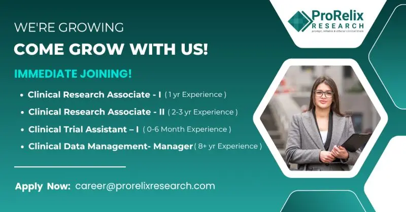Apply now for CRA, CTA & CDM roles at ProRelix Research, Pune. Openings for freshers and experienced candidates in clinical research. Life sciences & pharmacy graduates welcome.