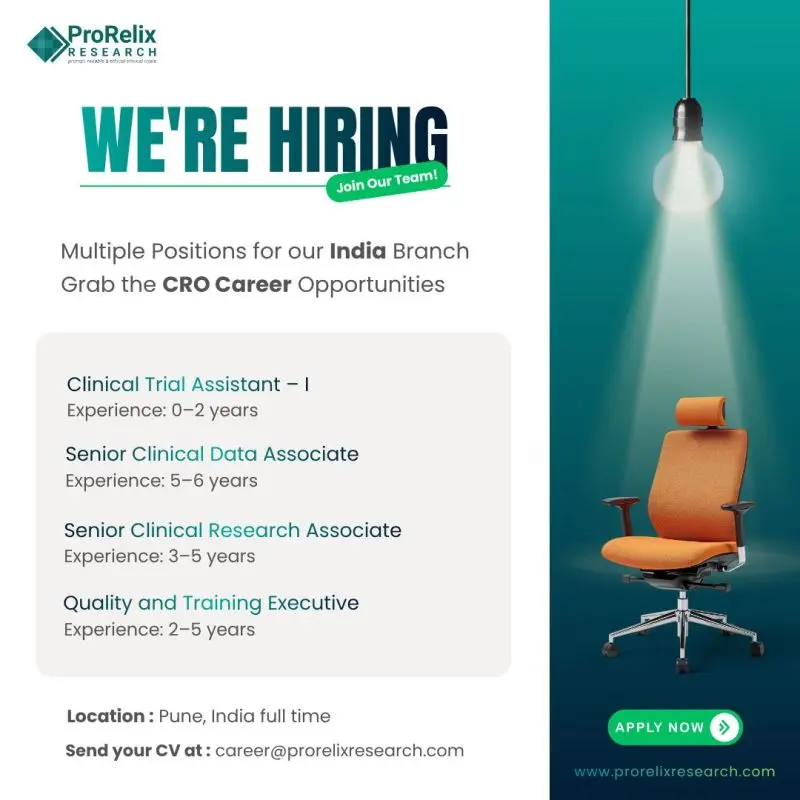 ProRelix Research is hiring for multiple roles across clinical research, data management, and quality functions at its Pune location. This is an excellent opportunity for both freshers and experienced professionals to build or advance their careers in the clinical research (CRO) industry.