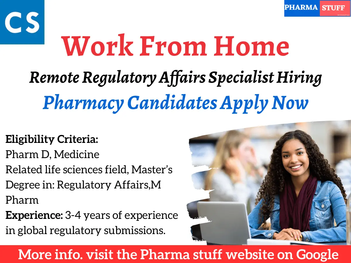 | Chisquare Labs | Global Regulatory Specialist | Pharm D, Medicine, M Pharm, Regulatory Affairs | 3-4 years | Work from Home |