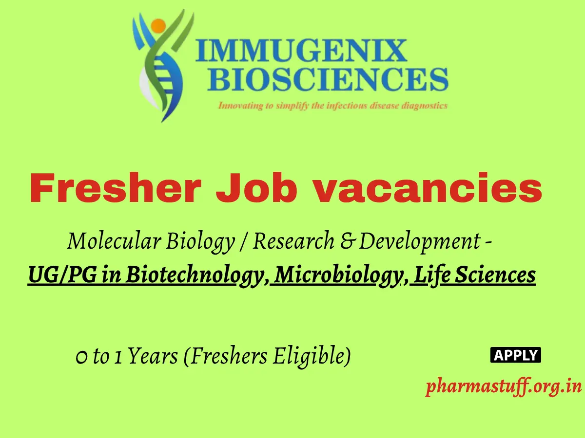 Are you a recent graduate in Biotechnology or Microbiology looking to kick-start your career in diagnostics and research? Immugenix Biosciences, a pioneer in molecular diagnostics, is offering full-time Research Associate positions in Chennai for freshers and early-career professionals.
