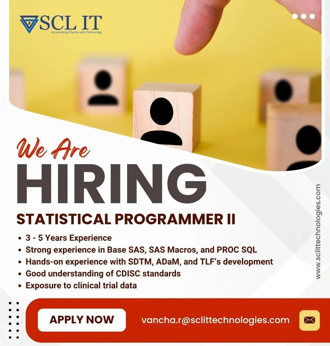 - SCL IT Hiring Statistical Programmer II – Clinical SAS & CDISC Roles for 3–5 Years Experience