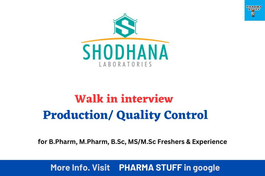 Shodhana Laboratories, a renowned name in the pharmaceutical industry, is conducting a walk-in interview for talented professionals in the Production and Quality Control departments. This is a fantastic opportunity for individuals with relevant qualifications and experience to join a leading organization at their Parawada, Andhra Pradesh facility.