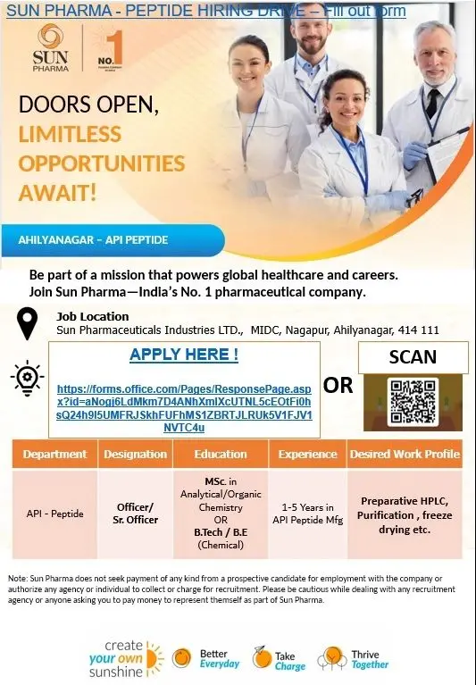 - Sun Pharma API Peptide Hiring | MSc/B.Tech | Ahilyanagar