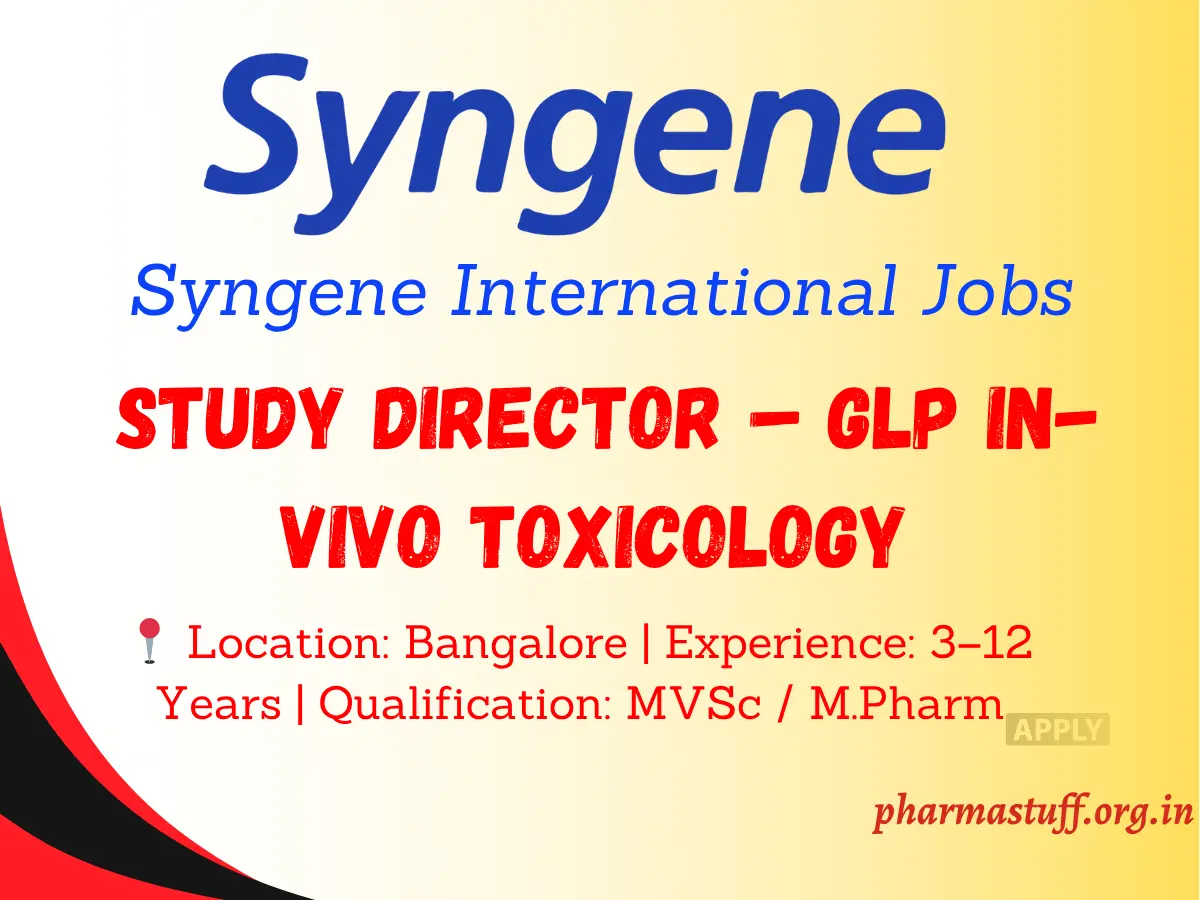 Syngene Hiring Study Director for GLP In-Vivo Toxicology | MVSc / M.Pharm | 3-12 Years Exp | Bangalore